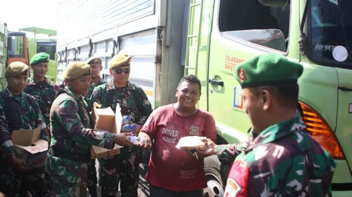 Jumat Penuh Kepedulian di Ketapang: Aksi Sunyi Prajurit Kodim 0825 Banyuwangi Menghangatkan Hati Sopir Truk dengan Berbagi Makanan dan Minuman