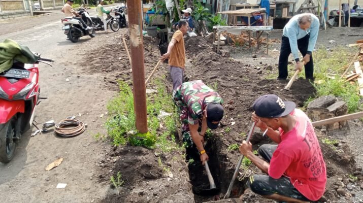 Blimbingsari – Babinsa Desa Karangrejo, Serda Herman Krismiardika melaksanakan kegiatan kerja bakti bersama masyarakat dalam rangka pembersihan saluran air yang tersumbat akibat hujan deras di Dusun Rejosari, Desa Karangrejo, Kecamatan Blimbingsari. Sabtu (22/11/2025).