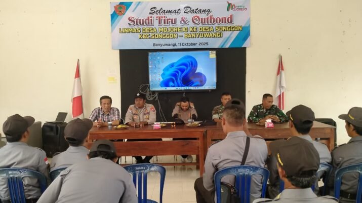 Songgon – Serka Eko Purwanto, Babinsa Koramil 0825/20 Songgon, menghadiri dan melaksanakan pendampingan Studi Lapangan dalam rangka Peningkatan Keterampilan Sumberdaya Anggota Linmas dan Program Linmas Desa Mojorejo, Kecamatan Junrejo, Kabupaten Kota Batu Malang, pada Sabtu (11/10/2025) pukul 08.00 WIB di Pendopo Kantor Desa Songgon.