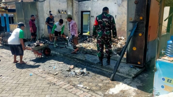 Genteng, 4 Oktober 2025 – Pasca kebakaran toko sembako di Dusun Sumberwadung, Desa Kaligondo, Kecamatan Genteng, Babinsa Kaligondo, Sertu Eko SH, bersama warga dan aparat lainnya melakukan pembersihan dan pendataan di lokasi kejadian.