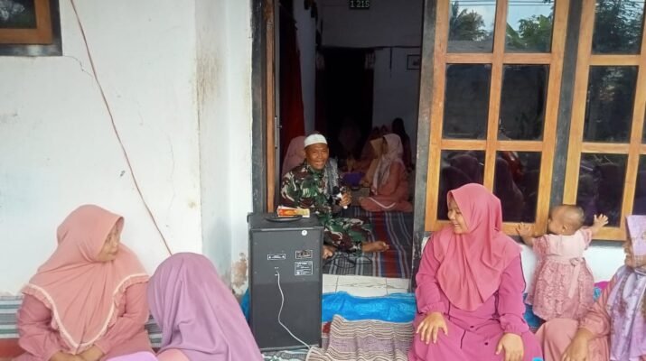 Banyuwangi – Suasana khidmat dan penuh kebersamaan tampak menyelimuti rumah Ibu Mu’tiah di Desa Kesilir, Kecamatan Siliragung, Banyuwangi, saat Tim Bintalrem 083/Bdj menggelar pengajian bersama ibu-ibu Muslimat, Sabtu (2/8/2025). Kegiatan ini merupakan bagian dari program non-fisik dalam rangka mendukung suksesnya pelaksanaan TMMD ke-125 Kodim 0825/Banyuwangi.