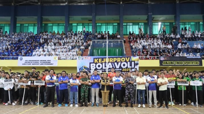 Suasana penuh semangat olahraga mewarnai GOR Tawang Alun Banyuwangi pada Senin (27/10/2025) pagi. Ajang bergengsi Kejurprov Jawa Timur Bola Voli Indoor U-19 Tahun 2025 resmi dibuka dengan meriah oleh jajaran Forkopimda Banyuwangi. Acara pembukaan yang dipimpin oleh Kapolresta Banyuwangi Kombes Pol Rama Samtama Putra tersebut turut dihadiri Dandim 0825/Banyuwangi Letkol Arm Triyadi Indrawijaya, S.H., M.I.P., bersama Bupati Banyuwangi Hj. Ipuk Fiestiandani, serta sejumlah pejabat daerah dan tokoh olahraga.