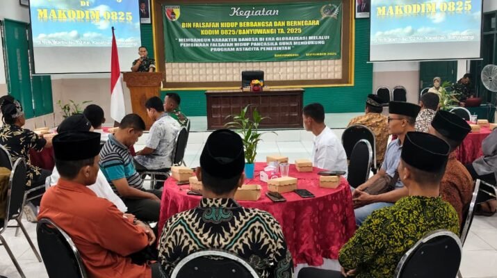 Banyuwangi – Kapten Czi Sahar Susanto mewakili Dandim 0825/Banyuwangi memimpin kegiatan Pembinaan Falsafah Hidup Berbangsa dan Bernegara TA 2025 di Aula Makodim 0825, Selasa (30/9/2025).