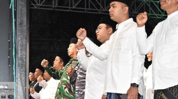 Acara berlanjut dengan pembacaan ikrar santri, resolusi jihad, serta lantunan sholawat dari Majelis Mahabbatun Nabi Banyuwangi yang menggema di langit malam. Doa dan lantunan sholawat yang mengalun lembut menutup kegiatan dengan suasana penuh kedamaian — meneguhkan tekad seluruh elemen bangsa bahwa santri, ulama, dan TNI akan terus berpadu menjaga keutuhan dan kehormatan negeri.