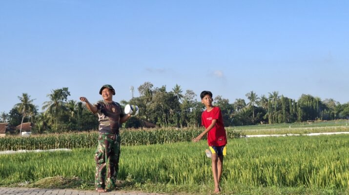 Kecamatan Siliragung, Banyuwangi – Di tengah kesibukan program TNI Manunggal Membangun Desa (TMMD) ke-125, para anggota Satuan Tugas (Satgas) menyempatkan diri untuk menjalin keakraban dengan anak-anak di Kecamatan Siliragung. Momen hangat tersebut terlihat saat para prajurit TNI asyik bermain layang-layang bersama anak-anak di Desa Kesilir dan Desa Siliragung, Jum’at (08/08/2025).