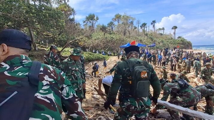 Aksi heroik terpancar di pesisir Pantai Pancur, Taman Nasional Alas Purwo, saat ratusan personel gabungan dari TNI, Polri, Pemerintah Daerah, hingga pelajar bersatu padu