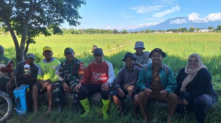Blimbingsari – Babinsa Desa Watukebo Koramil 0825/12 Rogojampi, Sertu Widi Hidayat, bersama Petugas Penyuluh Lapangan (PPL) dan masyarakat petani menggelar Gerakan Pengendalian Hama secara