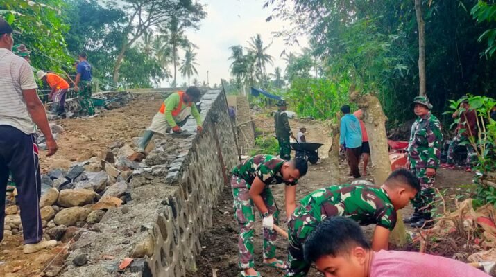 BANYUWANGI – Semangat gotong royong terus digelorakan oleh Tim Satgas TMMD ke-125 Kodim 0825/Banyuwangi dalam pembangunan jembatan penghubung antar desa yang berada di wilayah Kecamatan Siliragung, Kabupaten Banyuwangi. Pembangunan jembatan ini menjadi salah satu sasaran fisik utama dalam program TNI Manunggal Membangun Desa (TMMD) tahun 2025. Kegiatan berlangsung pada Minggu, 27 Juli 2025.