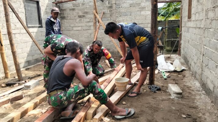 Babinsa Desa Kesilir, Sertu Bambang Darmawan, bersama anggota TNI lainnya dan warga setempat, melaksanakan kerja bakti membangun rumah milik Ibu Umiyati, salah satu warga yang mendapatkan bantuan dalam program TMMD tahun ini. Kegiatan ini tidak hanya mempercepat proses pembangunan rumah, tetapi juga mempererat hubungan antara TNI dan masyarakat.