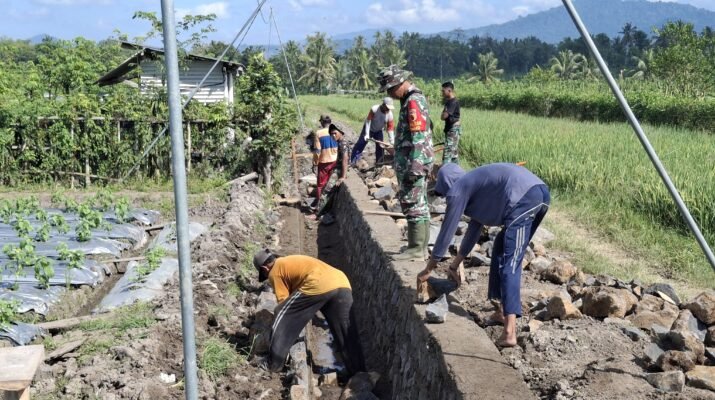 BANYUWANGI – Semangat gotong royong antara Tentara Nasional Indonesia (TNI) dan masyarakat terus membara di Desa Kesilir, Kecamatan Siliragung, Banyuwangi. Satuan Tugas (Satgas) TNI Manunggal Membangun Desa (TMMD) ke-125, bahu-membahu dengan Bintara Pembina Desa (Babinsa) dari Pos Komando Rayon Militer (Posramil) 0825/24 Siliragung, terus mempercepat pengerjaan proyek pembangunan saluran irigasi, Kamis (07/08/2025/).