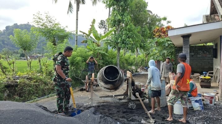 Pemandangan tumpukan pasir, kerikil, dan deru mesin molen menjadi melodi pembangunan yang harmonis di Dusun Krajan 1A, RT 18/RW 07, Desa Lebakharjo, Kecamatan Ampelgading, Kabupaten Malang. Semangat tak kenal lelah ditunjukkan oleh personel Satgas TNI Manunggal Membangun Desa (TMMD) ke-126 Kodim 0818/Malang-Batu, yang bersama-sama dengan warga setempat, bahu-membahu meracik adonan cor untuk pembangunan irigasi vital.