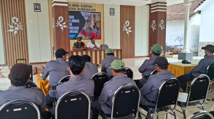 Blimbingsari — Babinsa Koramil 0825/12 Rogojampi, Desa Kaotan Sertu Achmad Mawardi, melaksanakan kegiatan pelatihan dan pembinaan kepada anggota Linmas Desa Kaotan bertempat di Balai