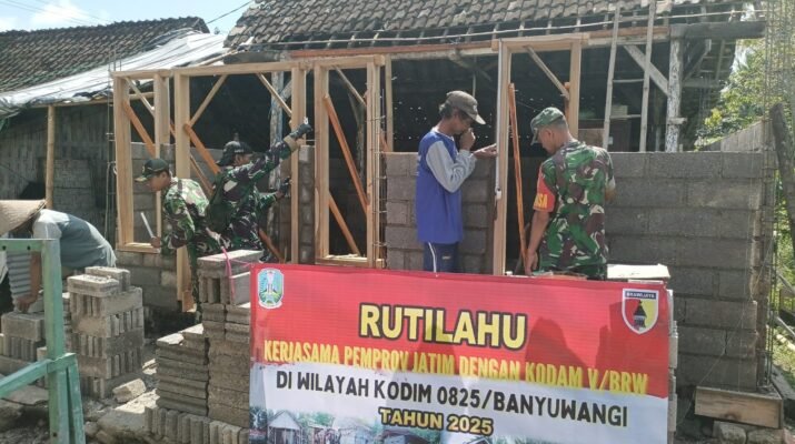 Singojuruh – Koramil 0825/13 Singojuruh menunjukkan keseriusan dan kecepatan dalam pelaksanaan pembangunan Rumah Tidak Layak Huni (RUTILAHU) di wilayahnya pada hari Kamis, 7-8-2025. Kegiatan