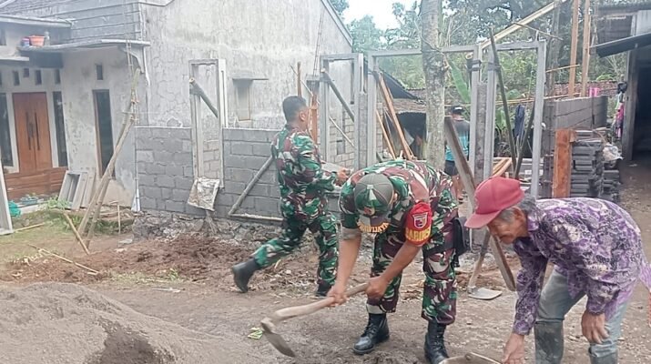 Kalipuro, – Dalam rangka meningkatkan kesejahteraan masyarakat dan memperkuat kemanunggalan TNI dengan rakyat, anggota Koramil 0825-21/Kalipuro bersama warga melaksanakan kegiatan gotong royong pembangunan Rumah