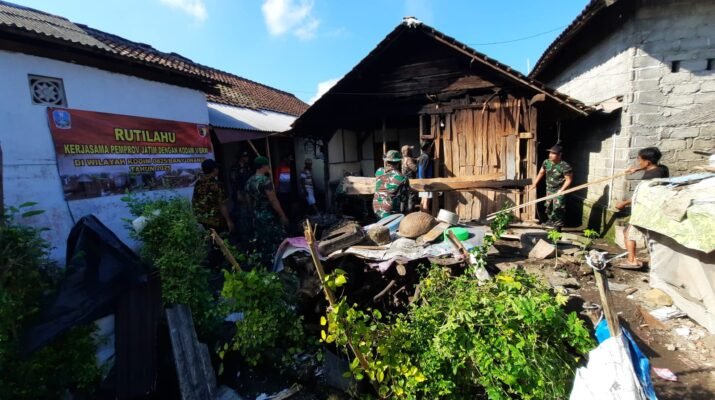 Kalipuro – Anggota Koramil 0825-21/Kalipuro menunjukkan aksi sigap dan tanggap dalam program pembongkaran Rumah Tidak Layak Huni (Rutilahu) tahun 2025 yang dilaksanakan pada hari
