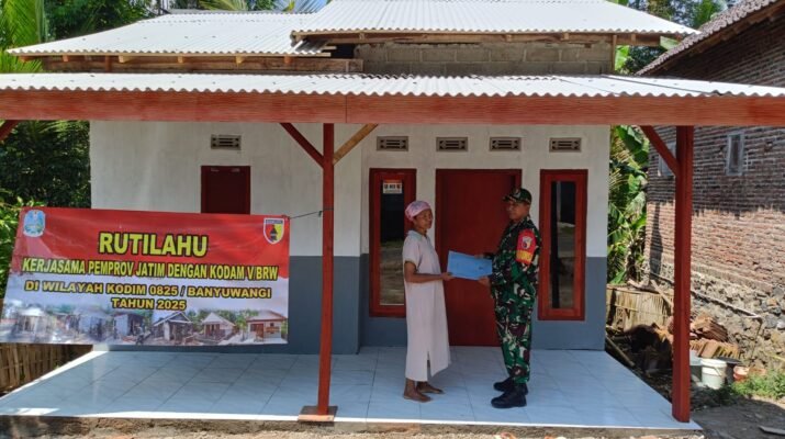 Kabat – Babinsa Desa Macan Putih, Kecamatan Kabat, Serka Hadi Purnomo berhasil merampungkan program Rumah Tidak Layak Huni (Rutilahu) tahun 2025 sebanyak 8 unit