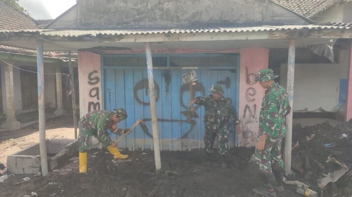 Percepatan Pemulihan: TNI Lumajang Gotong Royong Bersihkan Material Lahar di Rumah Warga