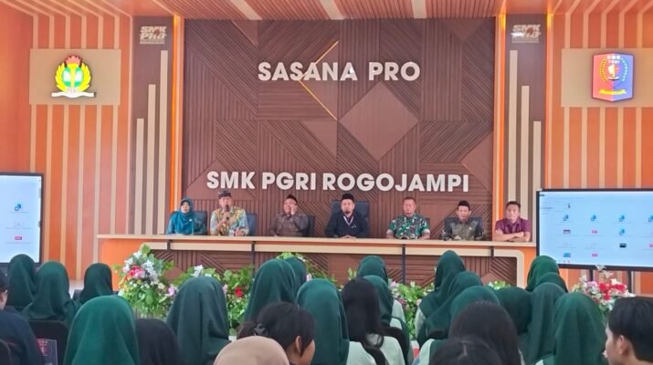 Rogojampi, Danramil 0825/12 Rogojampi, Kapten Cba Guntur, melaksanakan kegiatan sosialisasi pencegahan bullying di SMK PGRI Rogojampi. Kegiatan tersebut dilaksanakan bersama unsur Forkopimka Kecamatan Rogojampi