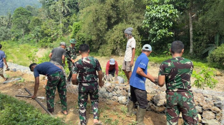 Pemasangan Bronjong Satgas TMMD 126 Perkuat Bantaran Sungai Lebakharjo Cegah Banjir